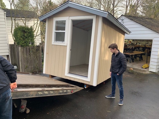 Joe from LIHI came by today to pick up the finished house. Here he is loading is onto his truck.