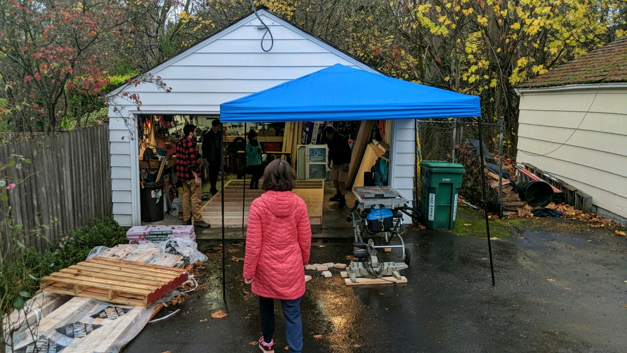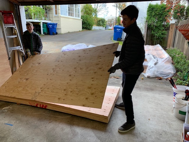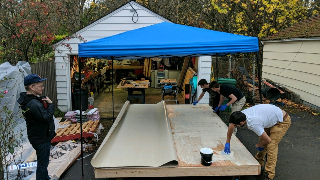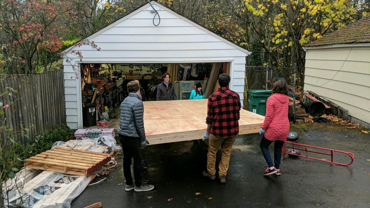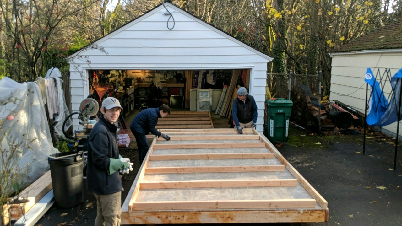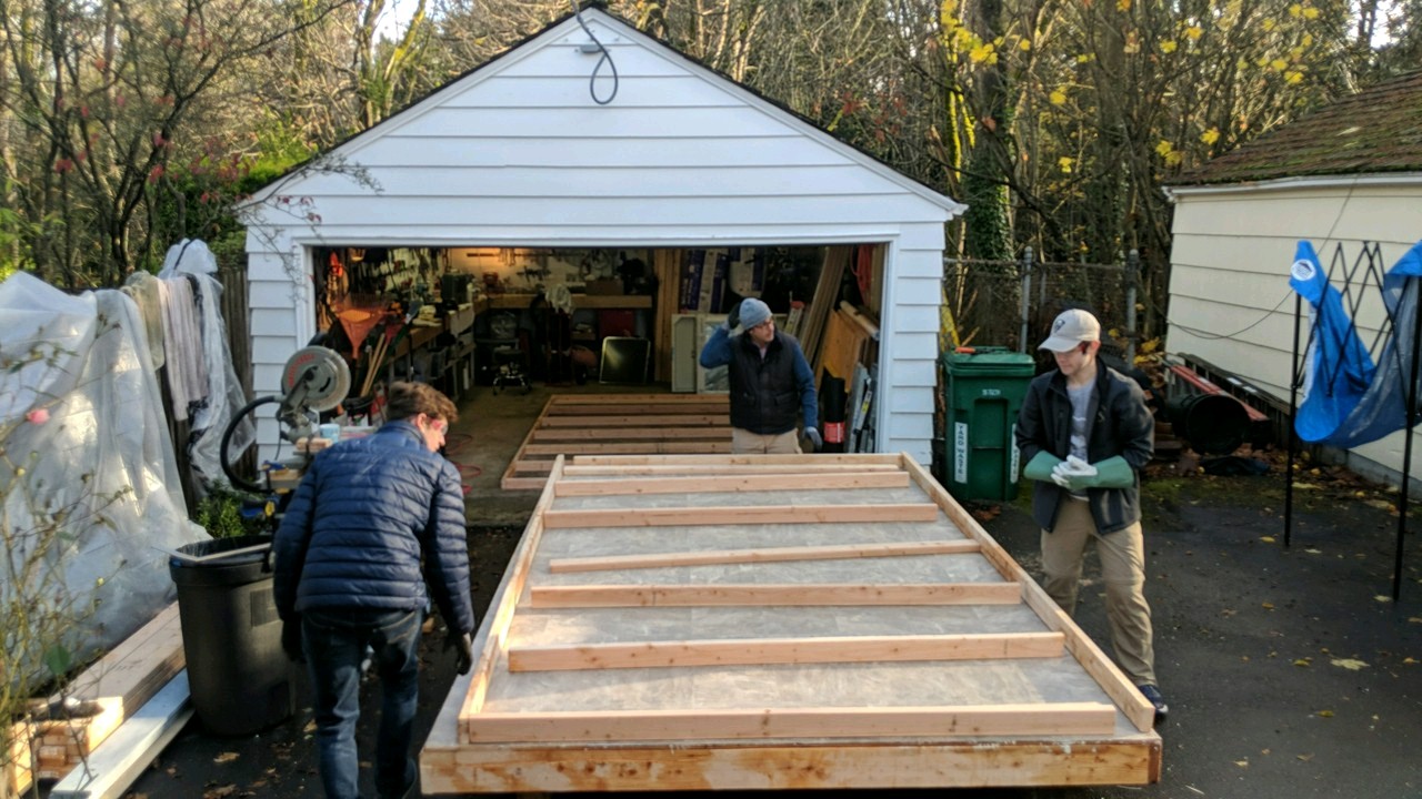 We built the floor in the garage and then moved it out to the driveway.