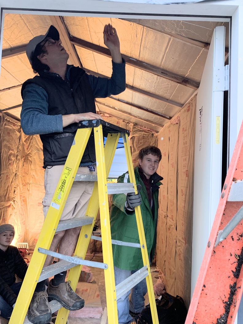 Thanks to Kirk, Xander and Theo, we installed all the insulation and the gable ends of the home.