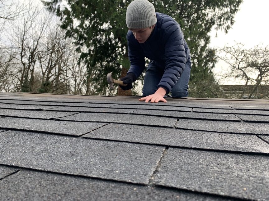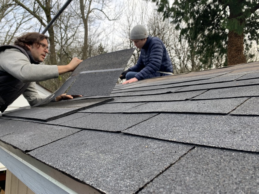 We did it over two days, but we finally got the shingles on. All that is left is the trim.