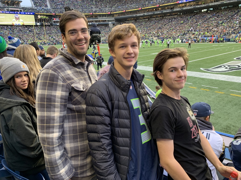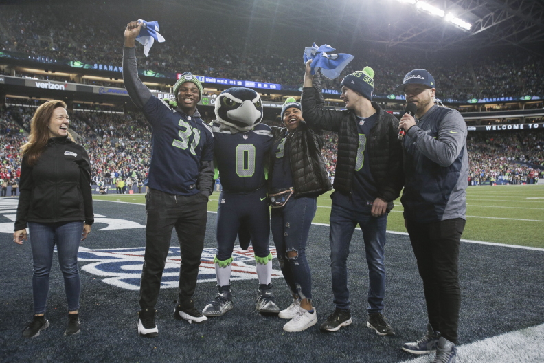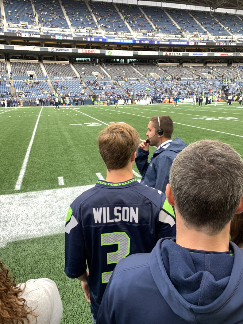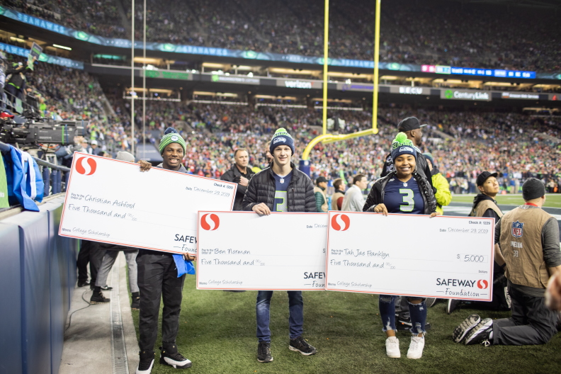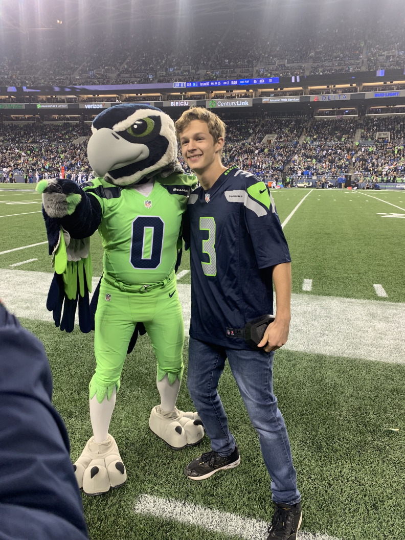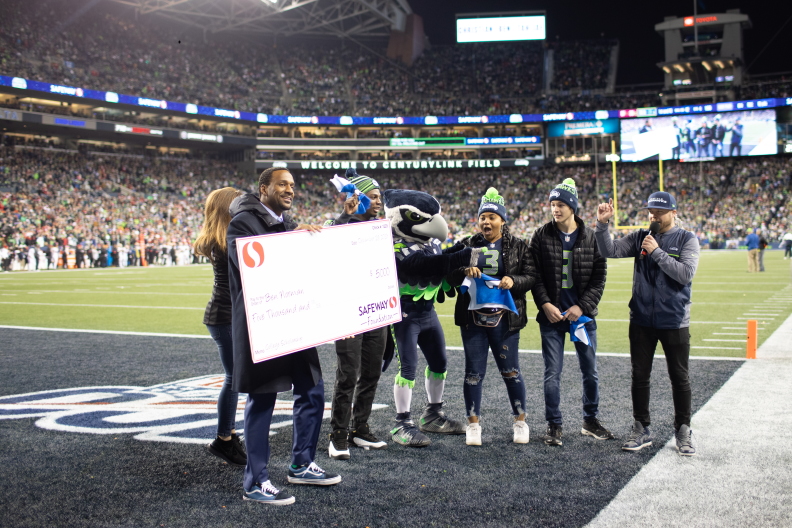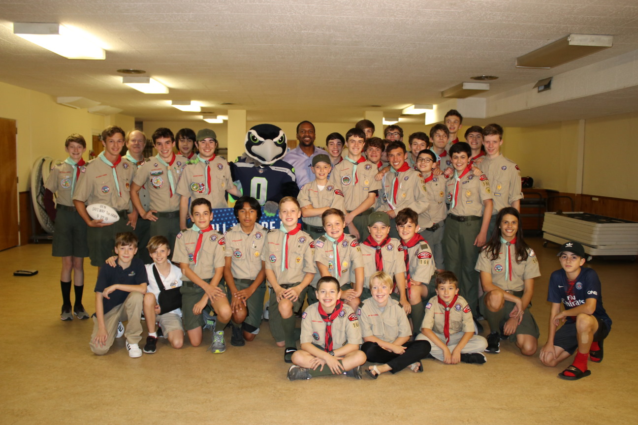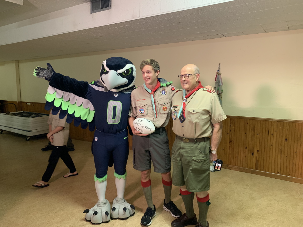 At one of our regular troop meetings, I received a suprise visit from former Seahawks player Jordan Babineaux, along with the Seahawks mascot, Blitz. They presented me with the Safeway Teehawk Award.